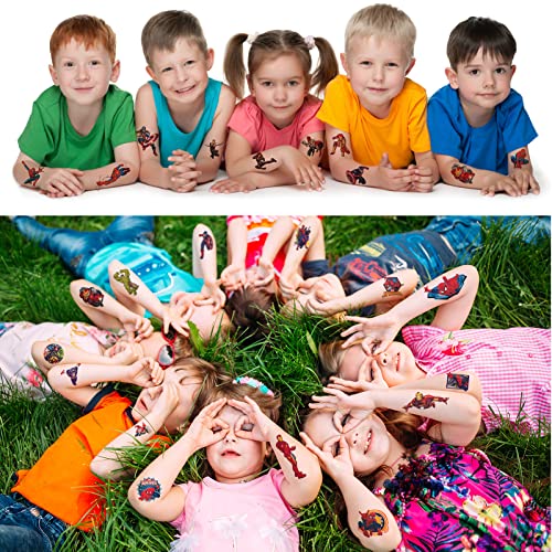 【Tema preferito dai bambini】Il set include 8 fogli di disegni di tatuaggi temporanei di Spider Man di grandi dimensioni, ci sono più di 200 modelli ricchi. Adatto a bambini di tutte le età, in particolare i bambini di età compresa tra 3 e 6 anni, amano il divertimento di viso, mani, gambe e braccia!