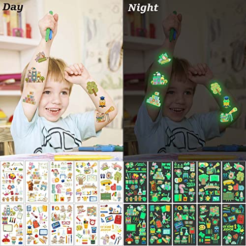 Tatuaggi Temporanei per Bambini, 10 Fogli Luminous Adesivi Tatuaggi Finti, Tatuaggio Set de Temi Scuola studia Stazionario, Ragazzo Ragazza Compleanno Festa Giochi Regalini Giocattoli