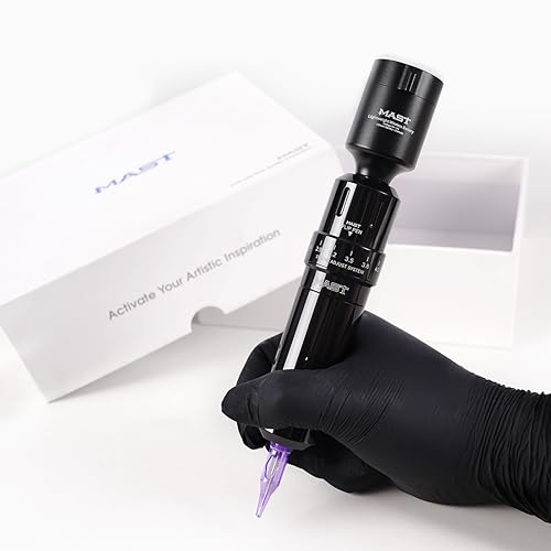 Mast Flip penna rotativa per tatuaggio è nota per la sua costruzione geometrica alta e precisa, progettata per un tatuaggio confortevole, pulito ed efficiente. La macchina Mast Flip è perfetta per gli artisti che preferiscono la precisione e il controllo delle macchine rotative stile penna, nonché i vantaggi di una lunghezza di corsa facilmente regolabile.