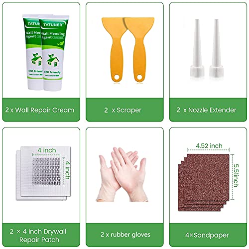 TATUNER Wall Mending Agent Cream,Stucco per Muro Bianco Pronto,Stucco in Pasta per il Riempimento di Grossi Fori e Buchi nel Muro, Piccole/Medie Riparazioni in Interno sia su Muro che su legno.