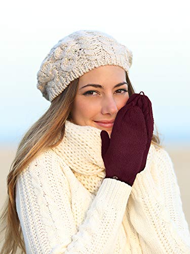 Tatuo Donna Guanto Convertibile a Maglia Guanto Mezzo Dito Manopole con Coperchio per i Giorni Freddi (Borgogna)