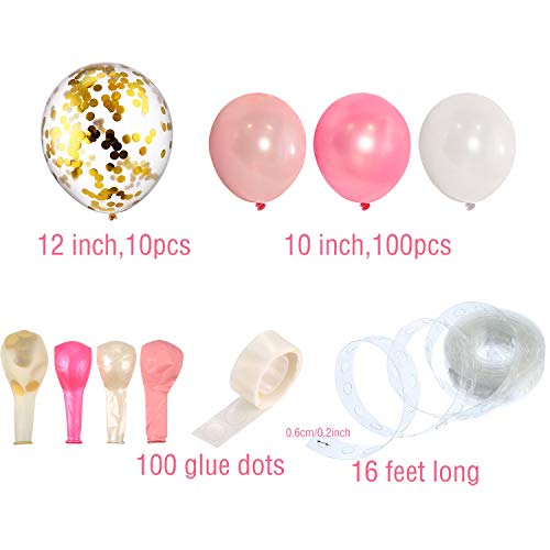 Palloncini in bianco rosa oro: include 100 pezzi 10 pollici bianco, baby rosa e perla rosa palloncini e 10 pezzi 12 pollici oro coriandoli palloncini, 110 pezzi in totale
