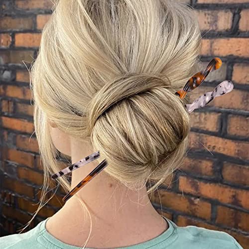 【Materiale Superiore】: Il bastoncino per capelli è realizzato in materiale acetato, che è elegante, resistente e inodore, non facile da rompere, non sbiadisce, superficie liscia, non preoccuparti che scivoli via dai capelli, il fermaglio per capelli può trattenerti bene nell'uso quotidiano, aggiunge glamour alla tua pettinatura e ti rende più bella ed elegante.
