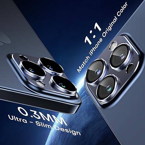 TAURI [2 pezzi Protezione Fotocamera per iPhone 15 Pro/iPhone 15 Pro Max [Antirottura] [Antigraffio] [Senza bolle] Protezione Fotocamera in Lega di Alluminio, Protezione di Qualità Militare-Blu