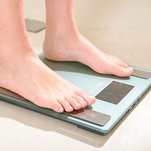 Taurus Syncro Glass Complet Bilancia da bagno digitale intelligente, percentuale grassa e acqua, massa muscolare e ossea, 3-180 kg, kg/lb, 28 x 28 x 2 cm, verde