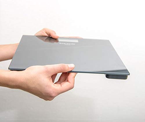 Bilancia con un materiale in vetro temperato ultra resistente, facile da pulire e antimacchia, con colore elegante grigio antracite
