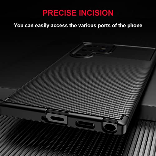 TAUYN Cover Disegno Fibra per Samsung Galaxy S22 Ultra 5G, Morbido TPU Silicio Custodia, Antiurto Armatura Paraurti Custodia Cellulare - Nero
