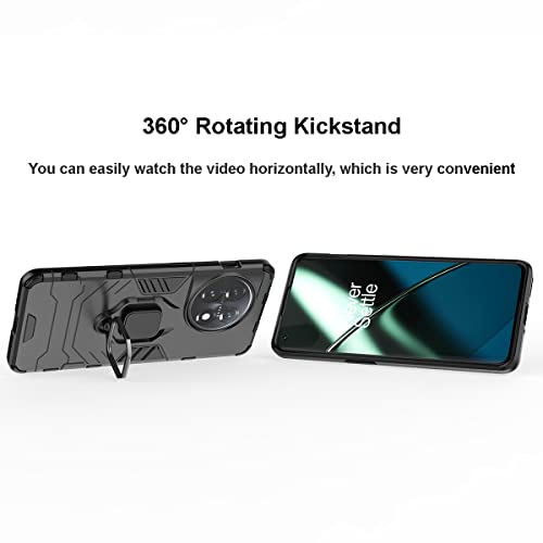 TAUYN Custodia per OnePlus 11 5G, TPU/PC Antiurto Custodie con 360° Regolabile Anello Magnetica Supporto, Armor Bumper Protezione Case Caso - Nero