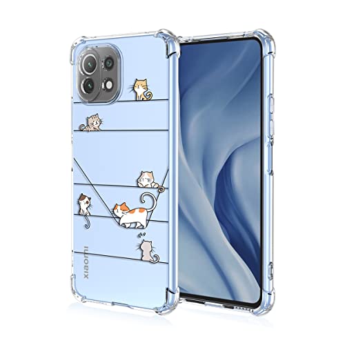 TAUYN Custodia per Xiaomi Mi 11 Lite 5G/4G/5G NE, Soft TPU Bumper Antiurto Protettiva Case, Trasparente Silicone Gatto Carino Modello Girls Protezione Shell, Gattino