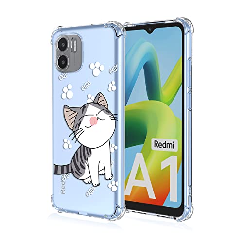 TAUYN Custodia per Xiaomi Redmi A1, Soft TPU Bumper Antiurto Protettiva Case, Trasparente Silicone Gatto Carino Modello Girls Protezione Shell, Gatto
