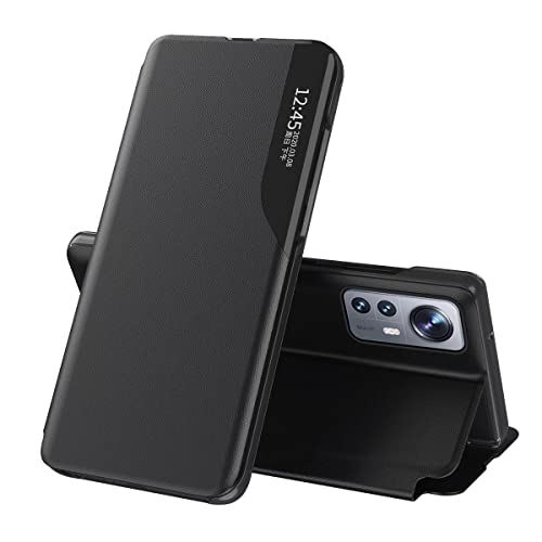 TAUYN Smart View Custodia per Xiaomi 12 Pro/Xiaomi 12S Pro, Premium PU Pelle Cover con Una Schermo Finestra, Specchio Elegante Case con Supporto Pieghevole. - Nero
