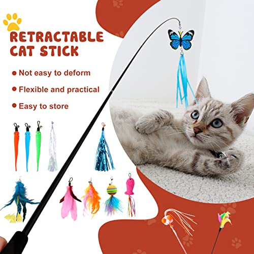 ✅ 【MATERIALI SICURI E DI ALTA QUALITÀ】 Tutti i giocattoli sono realizzati in materiale sicuro e non tossico. La piuma di buona qualità ispira la ferocia del gatto ed è adatta ai gatti. Il giocattolo da pesca telescopico realizzato in nuovo materiale, con maggiore elasticità e durezza, più spesso e più resistente.