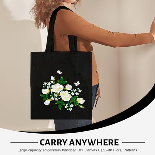 TAVADA Kit da Ricamo per Borsa di Tela,Kit da ricamo per borse,Kit Punto Croce con Motivo Floreale,Kit Ricamo Borsa in Tela,Ricamo a Mano a Punto Croce Borsa in Tela con Motivo Prestampato(2 Set)