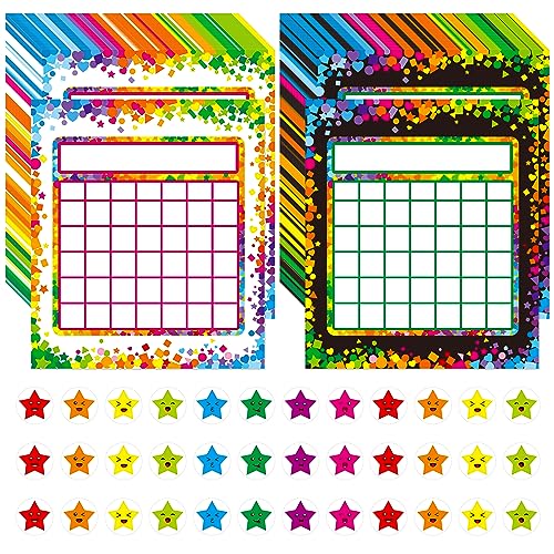 Pacchetto vantaggioso: 80 tabelle in 2 design (40 per ciascuno), oltre a 2024 adesivi a forma di stella come ricompensa. Ogni tavola degli incentivi misura 15cm x 13cm, una dimensione adeguata per l'uso in classe e a casa. Un ottimo strumento per incoraggiare i bambini.