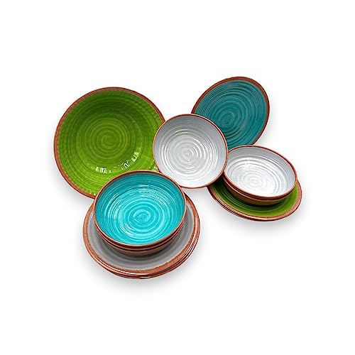 Articolo super - Il nostro set di melamina contiene 13 pezzi: 6 piatti piani Ø 26 cm, 6 piatti fondi Ø 20 cm, 1 Insalatiera da Ø 30 cm. Disegnato con gusto con colori vivaci, è un set attraente e carino, e pratico ed utile allo stesso tempo