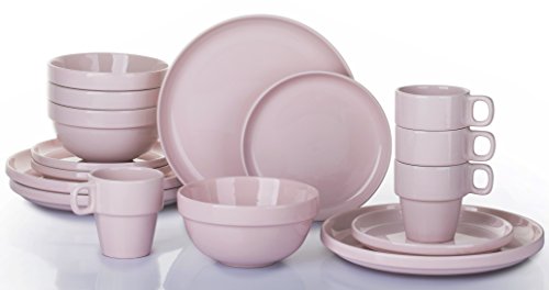 Set da tavola, 16 pezzi impilabili, rosa pastello