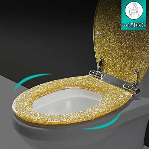 Tavoletta WC Colorata, Copriwater a Chiusura Rallentata, Sedile WC Ovale Glitterato con Sgancio Rapido Facile da Pulire, Asse WC in Resina di Alta Qualità (Color: Red-Pure Color)