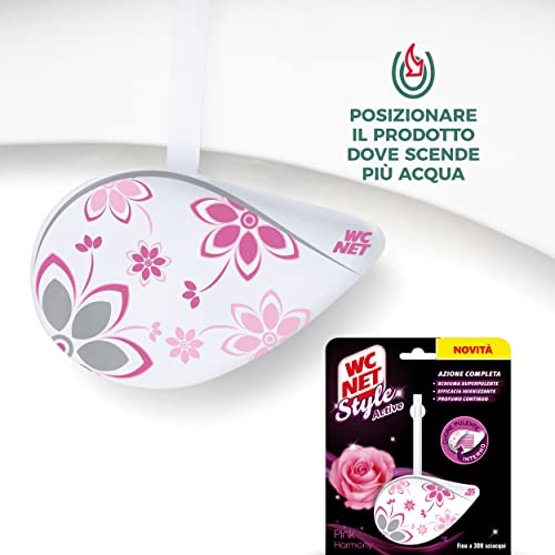 Wc Net - Tavoletta Style Active, Detergente Igienizzante Solido per WC, Fragranza Pink Harmony, 1 Pezzo