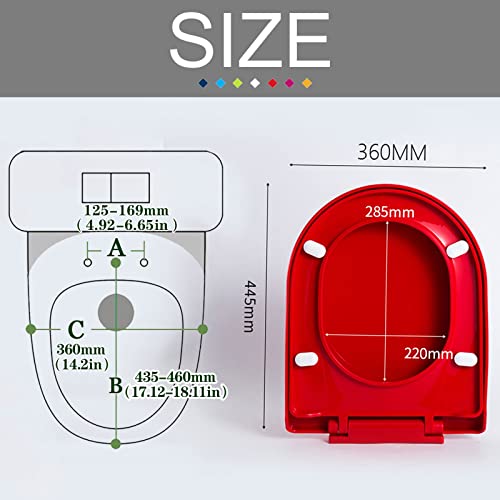 Tavoletta WC Universale Colorata, Copriwater a Chiusura Rallentata, Sedile WC Materiale Plastico Spesso con Cerniera Regolabile a 360°, Facile da Montare (Color: Red)