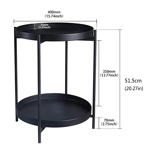 Tavoli e tavolini Tavolino da Salotto a 2 Ripiani, Tavolino da Divano Rotondo con Vassoio Movibile, Tavolino da caffè, Struttura in Metallo, for Soggiorno e Camera da Letto, (Color: Black, Size: 1