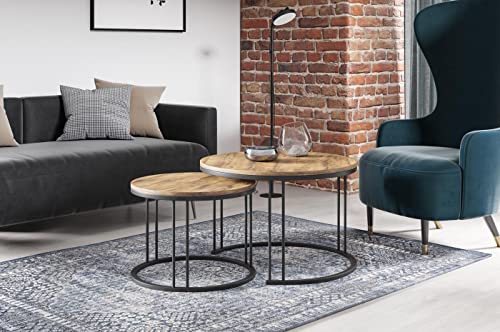 Tavolini Rotondi Componibili - Tavolini Loft Style Con Gambe in Metallo - 2 in 1 - Due Mini Tavoli Separati Stile Industriale Per il Soggiorno - Quercia Craft/Nero