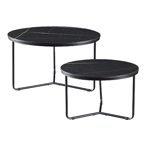 En.casa - Set di 2 Tavolini Sovrapponibili Tavolini Bassi da Salotto Tavolini Moderni in Altezze Diverse Piano Tavolo Rotondo Effetto Marmo Nero
