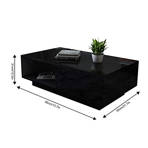 Tavolino basso moderno ad alta lucentezza, con cassetto e cassetti, tavolino basso da salotto elegante ed elegante, usato in ufficio, a casa, all'albero, colore: nero