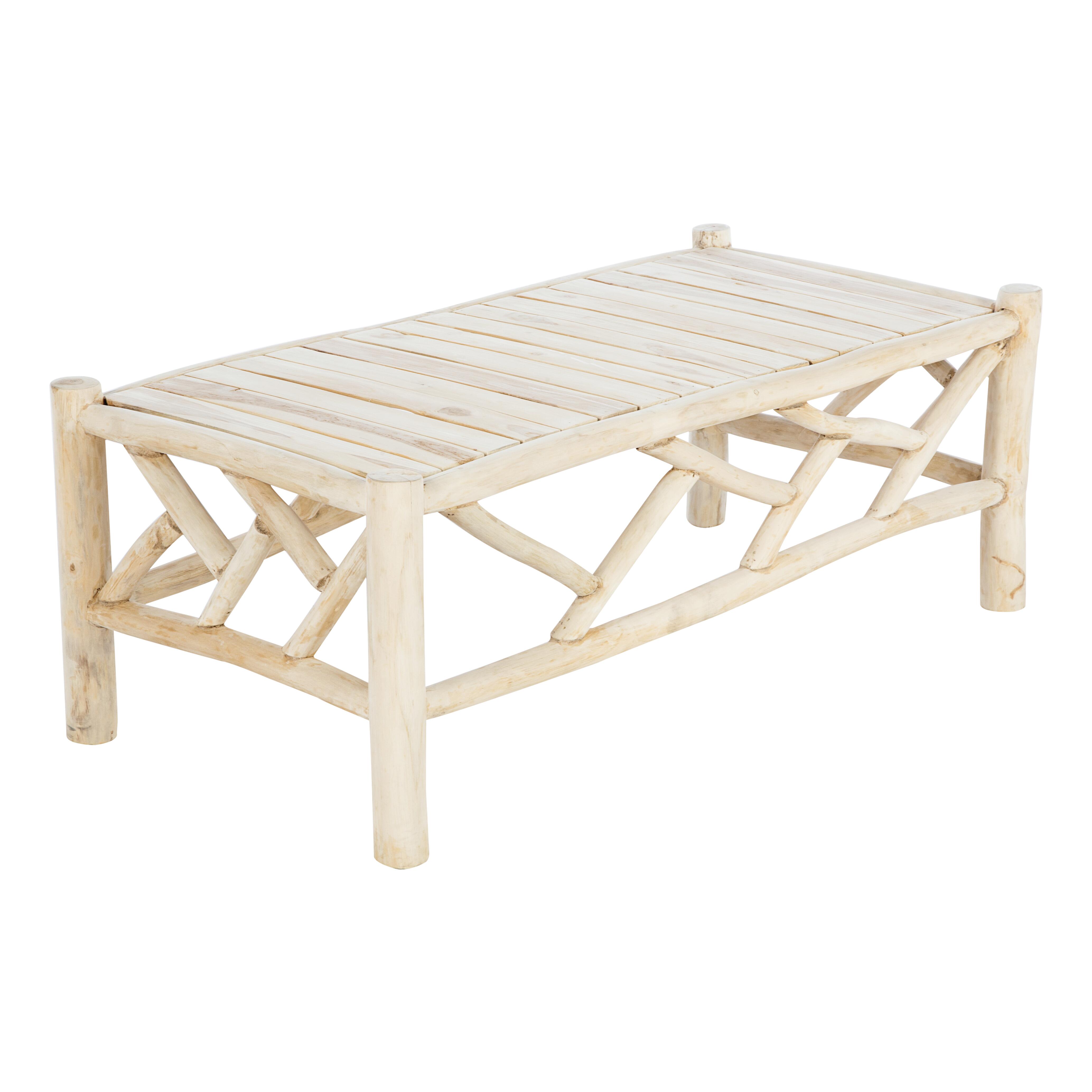 In teak.. Resistente alla ruggine e alle deformazioni dovute agli agenti atmosferici