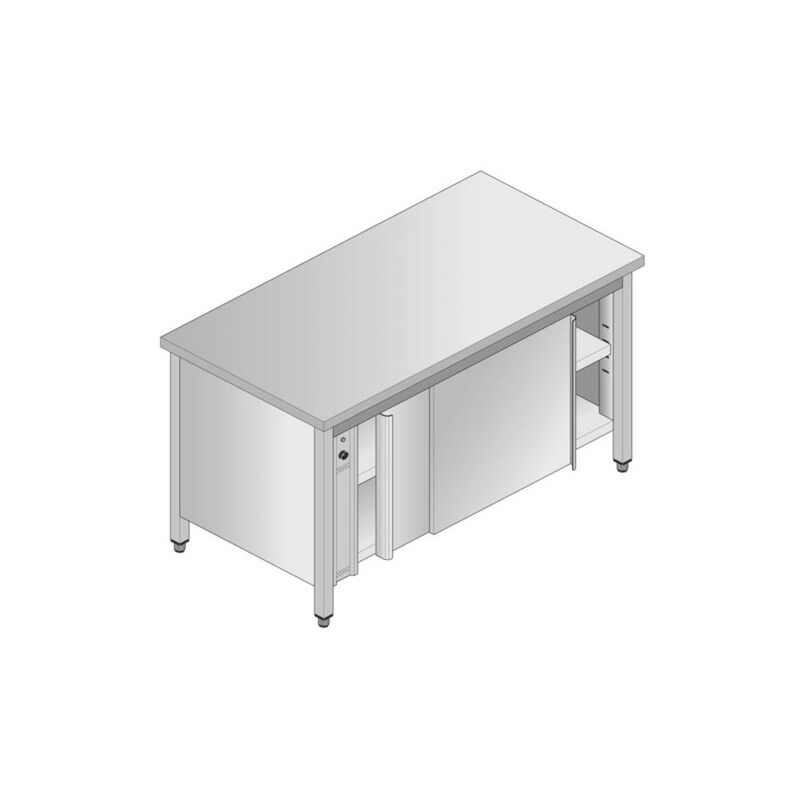 Codice RS5811 - Scaldapiatti armadiato, ripiano intermedio, antine scorrevoli tamburate, modello AC-EL/AC/180/7, costruito in acciaio inox 18/10 AISI 304 (no 430), dimensioni cm. 180x70x85 (lxpxh). Piano con spessore 4 mm in acciaio inox, rinforzato da un sottopiano in legno truciolare idrofugo spessore 18 mm. Riscaldamento con ventilazione e termostato regolabile fino a 90 °C, 230 volt, 2500 watt. Piedini regolabili in altezza.