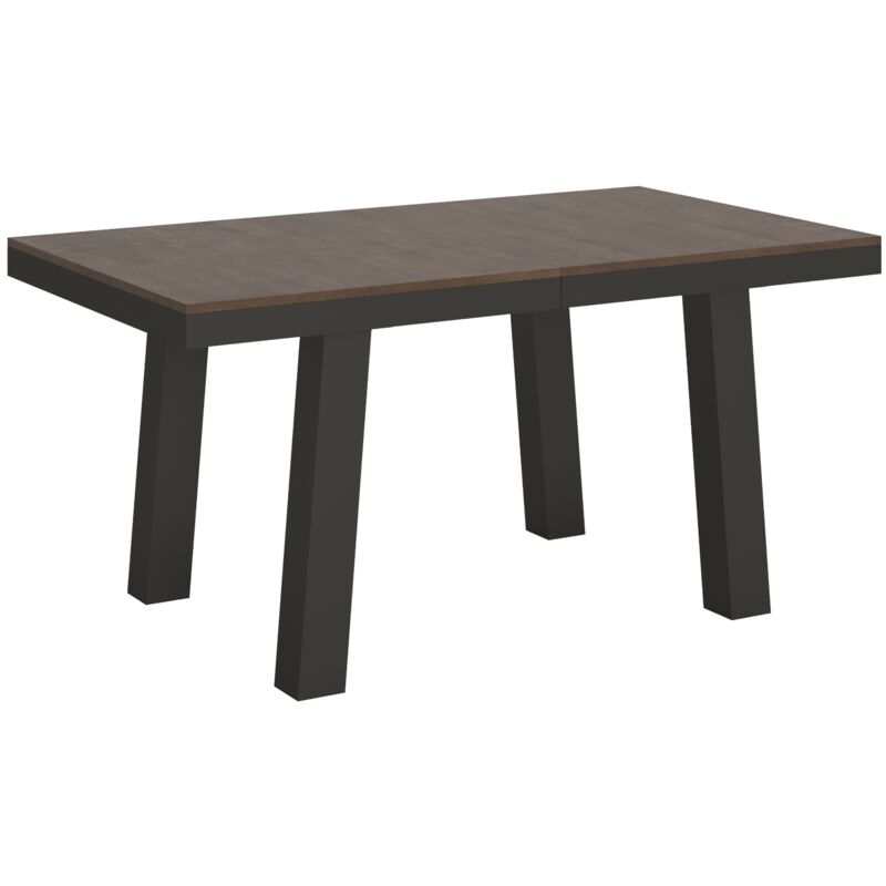 Tavolo allungabile Bridge Evolution da 160 cm, dal design industriale, si adatta a qualsiasi stile di arredamento e si rivela la scelta ideale sia come tavolo da pranzo che come elemento d'arredo per il soggiorno, dove poter accogliere i propri ospiti con stile. Il tavolo allungabile Bridge Evolution è in grado di estendersi progressivamente fino a 264 cm capace di ospitare 12 persone. Realizzato con pannelli in nobilitato, telaio e gambe in ferro. Il sistema di estensione con guide telescopiche in alluminio rende il tavolo stabile e robusto anche se totalmente allungato, senza bisogno di ulteriori sostegni. Le allunghe sono immediatamente pronte all'utilizzo in quanto alloggiate sotto il piano principale. Prodotto Itamoby Made in Italy Dimensioni: Tavolo chiuso: L.160 P.90 H.77 cm Lunghezza con 1 allunga: 212 cm Lunghezza con 2 allunghe: 264 cm Informazioni: Materiali: Pannelli in nobilitato, ferro Segui le istruzioni di montaggio