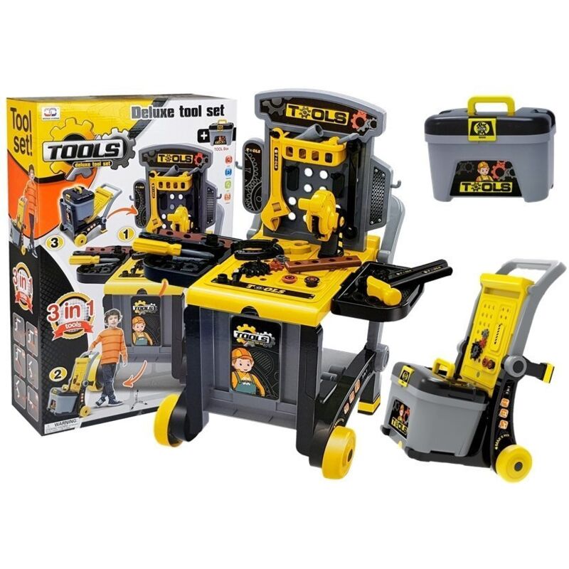 Kit fai da te grande - tavoloIl kit fai da te è composto da elementi con cui ogni ragazzo si divertirà molto. L'opportunità di imitare tuo padre, il tuttofare domestico, farà sicuramente sentire il bambino piccolo più maturo e responsabile. L'uso del set presentato durante il gioco aiuterà lo sviluppo del bambino a molti livelli: il lavoro manuale ha un grande impatto sulla coordinazione, sul pensiero logico e sulla creatività del bambino. Il set comprende: - Strumenti (sega, chiavi inglesi, cacciaviti, chiavi inglesi, martello, pinze - Struttura del tavolo e del carrello - Scaffale con contenitori per viti - cassetta degli attrezzi - Accessori fai da te - tavole, viti, dadi - altri articoli necessari in magazzino Il set presentato è costituito da una grande struttura del tavolo con ripiani laterali, su cui sono posizionati vari strumenti e accessori. Il tavolo si trasforma facilmente in un carrello e può essere trasportato in vari angoli e stanze. Un ottimo giocattolo per tutti i