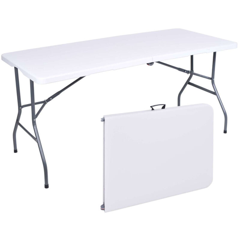 Tavolo da catering pieghevole in valigia Modello: RICO | Dimensioni: 152 cm | Colore: bianco Tavolo da ristorazione molto pratico e leggero. Struttura in acciaio. Il piano del tavolo è realizzato in plastica resistente. Una volta piegato, il tavolo forma una pratica valigia, quindi occupa poco spazio ed è facile da trasportare. Perfetto per il campeggio. Grazie al design unico, l'intera struttura si nasconde nel piano del tavolo, creando una valigia ergonomica. Il materiale di altissima qualità utilizzato per produrre il piano di lavoro lo rende il più resistente disponibile sul mercato polacco. Proprietà Costruzione stabile Sistema di apertura e piegatura efficiente e solido. Materiale del piano del tavolo: polietilene HDPE 100% impermeabile Resistente per molte stagioni Materiale del telaio: acciaio verniciato a polvere Maniglie pieghevoli e comode per il trasporto Leggero, occupa poco spazio quando imballato Gambe con staffe di bloccaggio I piedini antiscivolo garantiscono