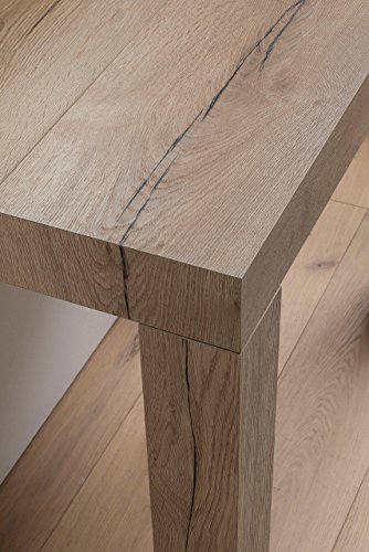 il materiale nobilitato melaminico è di alta qualità e la sua finitura rovere rustico dona al tavolo l'aspetto del vero legno
