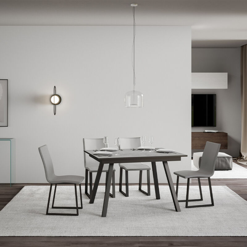 Tavolo allungabile Mirhi da 120 cm, dal design industriale, si adatta a qualsiasi stile di arredamento e si rivela la scelta ideale sia come tavolo da pranzo che come elemento d'arredo per il soggiorno, dove poter accogliere i propri ospiti con stile. Il tavolo allungabile Mirhi è in grado di estendersi fino a 180 cm capace di ospitare 8 persone. Realizzato con pannelli in nobilitato, telaio e gambe in ferro. Il meccanismo di apertura ed estensione del tavolo è estremamente semplice: è sufficiente far scorrere lateralmente il piano del tavolo per creare lo spazio sufficiente per l'inserimento dell'allunga. L'allunga è immediatamente pronta all'utilizzo in quanto alloggiata sotto il piano principale. Prodotto Itamoby Made in Italy Dimensioni: Tavolo chiuso: L.120 P.90 H.74 cm Lunghezza con 1 allunga: 180 cm