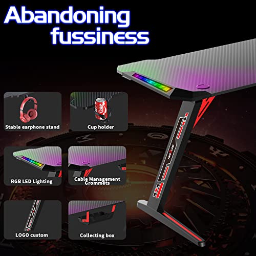 Design multifunzionale Questa scrivania da gioco per PC è stata progettata appositamente per l'intera attrezzatura di gioco. La scrivania da gioco è dotata di ganci per cuffie, portabevande e non è solo una scrivania da gioco, ma anche una stazione di lavoro multifunzionale.