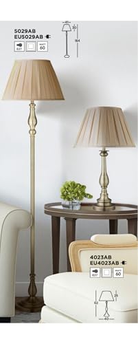 Tavolo Con lampada da terra ottone antico / visone pieghe Shade - Searchlight 4023AB