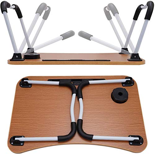 Tavolo da letto per computer portatile, portatile, supporto per lettura per notebook, tavolo da dormitorio con gambe pieghevoli e slot per tazza, leggere, guardare film sul letto/divano (60x40 cm)