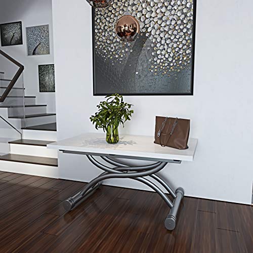 Il tavolo è regolabile in altezza grazie al sistema di sollevamento a gas idraulico, potrà essere utilizzato come da tavolino da caffè con l'altezza di 47.5 cm o come scrivania o tavolo da pranzo con l'altezza a 74.5 cm