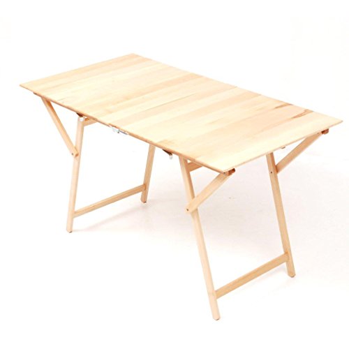 Tavolo da pranzo in legno di faggio, con piano a doghe di legno completamente chiudibile, regolazione di sicurezza.