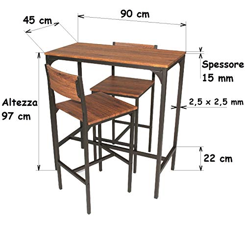 Set Tavolo BAR e 2 Sgabelli Marrone H.96cm Arredo Cucina Mod. VENICE