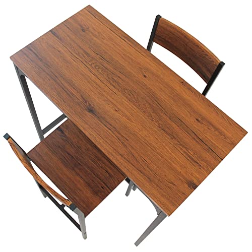 MATERIALE: Piani in pressato rivestiti di PVC simile Noce spessore 1,5 cm. Struttura tubolare 2,5x2,5 e 2,5x2,5 cm in metallo colore Marrone Scuro. Utilizzo domestico. Piedini in plastica. Sono da interno. Portata tavolo 40 kg. Portata sgabello 100 kg.
