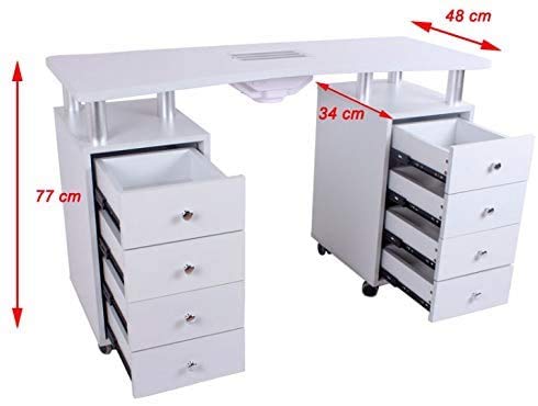 Dimensioni: 122 x 48 x 77 Cm - L'ampia superficie di lavoro consente un confortevole svolgimento di manicure, lasciando comunque spazio a disposizione per posizionare lampade UV e portapennelli o smalti