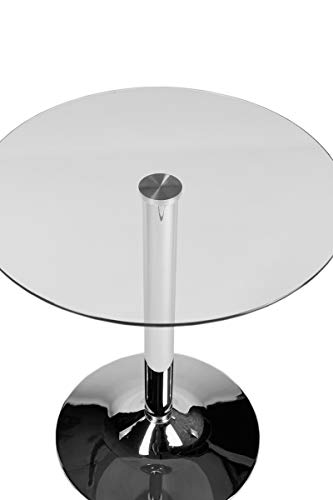 CLP Tavolo in Vetro Rotondo di Sicurezza Ø 60 CM, H 70 CM I Tavolo Moderno Bar con Piedistallo in Metallo Cromato, Colore:Vetro Trasparente