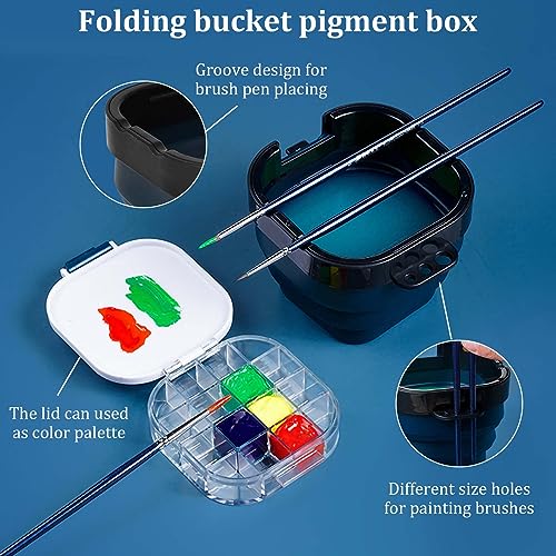 【Scatola di vernice portatile】Il detergente per pennelli può essere piegato. Ci sono 3 fori laterali e 2 scanalature superiori per diverse spazzole. La scatola di immagazzinaggio del pallet misura 3,5 "x 3,5" x 0,9 ", comoda e portatile per i viaggi.