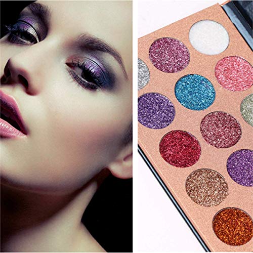 Tavolozza di 15 colori glitterati, ogni colore è unico, bello, super brillante e pigmentato. Texture liscia e fine con fattore scintillante di lunga durata con finitura luccicante, ti offre esperienza d'uso confortevole e occhi lucenti.