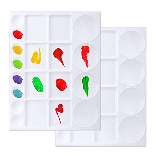 AIEX 2pcs Tavolozza Pittura Plastica, Tavolozza Acquerelli Bianca, Palette Acquerelli, Tavolozza Pittura Professionale Tavolozza Pittura Olio per Pittura Acrilica ad Olio, 33x25cm