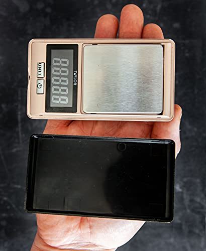 Taylor Pro Bilancia da Cucina di Precisione in Plastica e Acciaio Inossidabile, con Accuratezza nel Controllo delle Porzioni a 0.01 g, Oro Rosa, 500 g / 16 oz