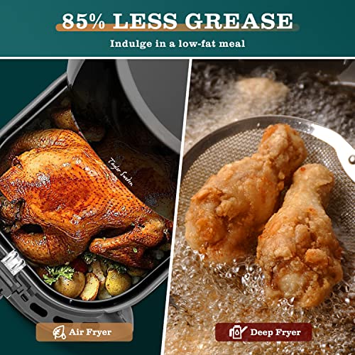 【MANGIARE SANO】: L'innovativa funzione di circolazione dell'aria è l'alternativa più salutare alla frittura perché richiede solo un cucchiaio di olio o meno per prepararsi! Ciò significa che consumerai l'80% in meno di olio, continuando a gustare tutti i tuoi piatti preferiti con il miglior gusto.