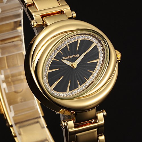 Taylor Cole TC100- orologio da polso da donna,Petal ispirato cassa quadrante ovale in acciaio inossidabile oro