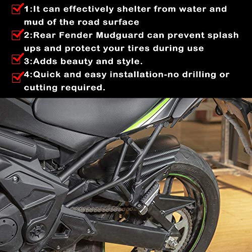 〖Funzione del parafango〗~Questa copertura della carenatura del parafango posteriore per Ver-sys 650 può prevenire efficacemente schizzi d'acqua e fango sul corpo della moto, proteggendo efficacemente la vernice superficiale della tua moto. Ti permette di affrontare in modo libero e rilassato forti piogge, strade fangose e altre condizioni di guida estreme senza scrupoli.